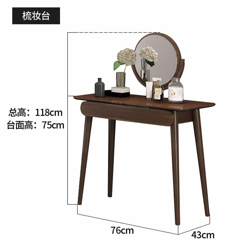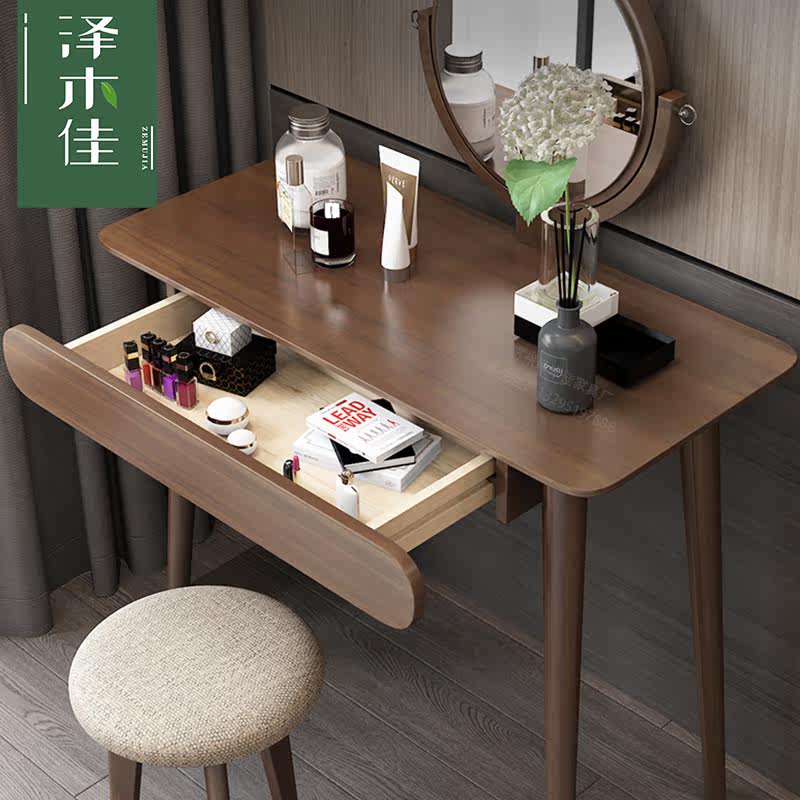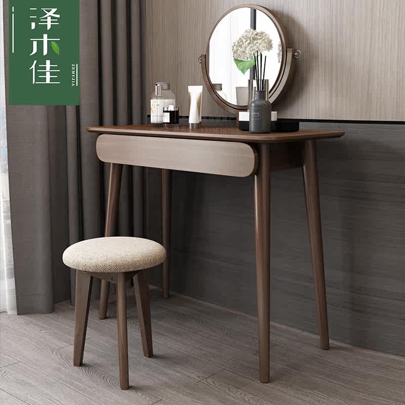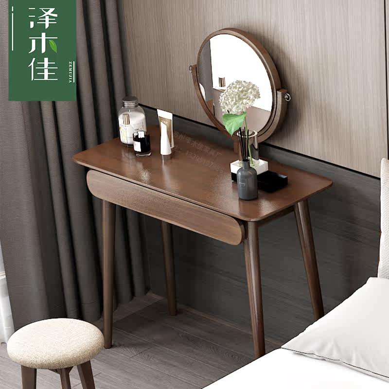 All solid wood dressing table simple modern bedroom Nordic black walnut net red mini small apartment makeup table and chair