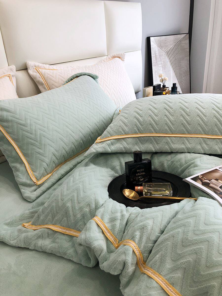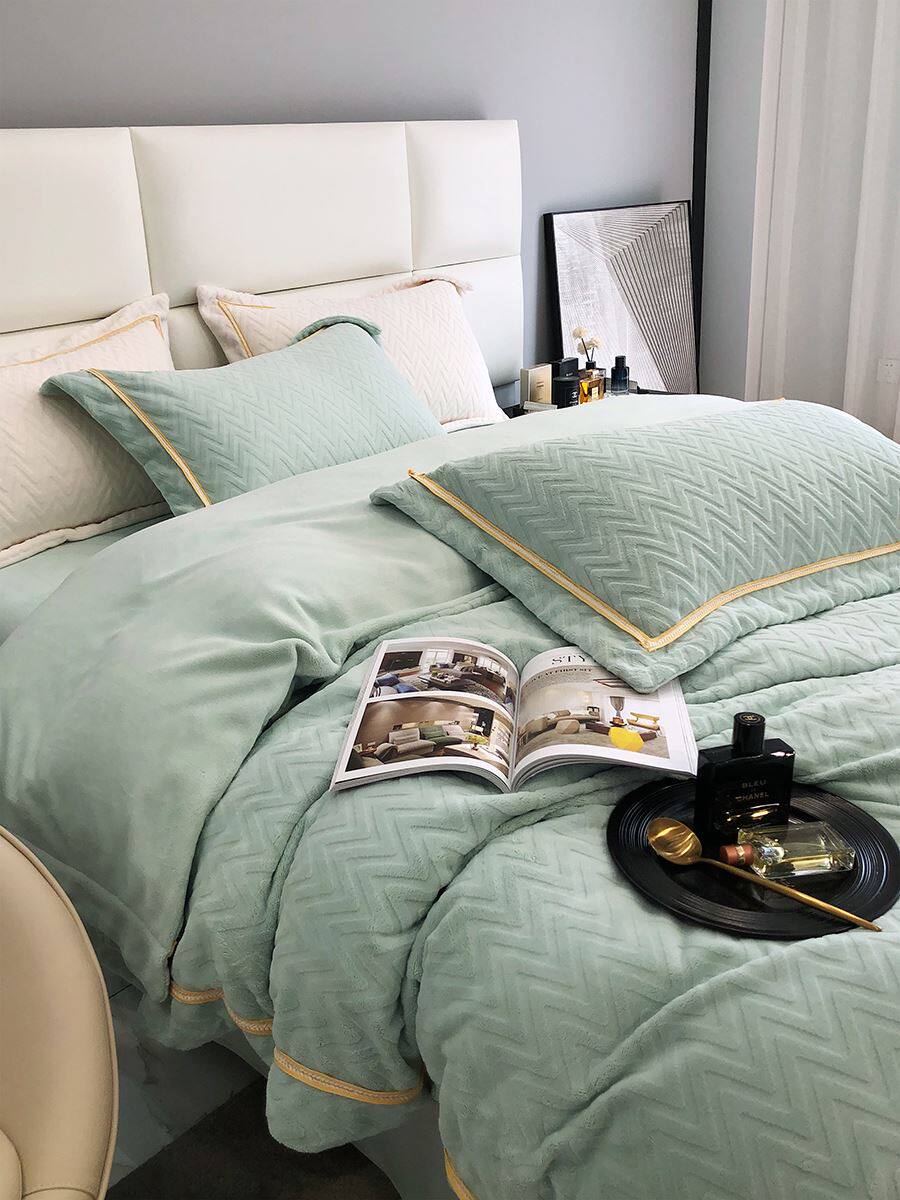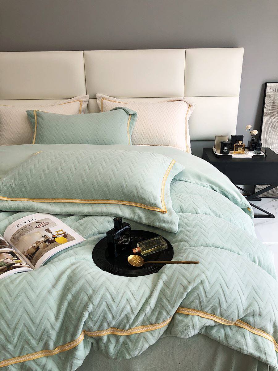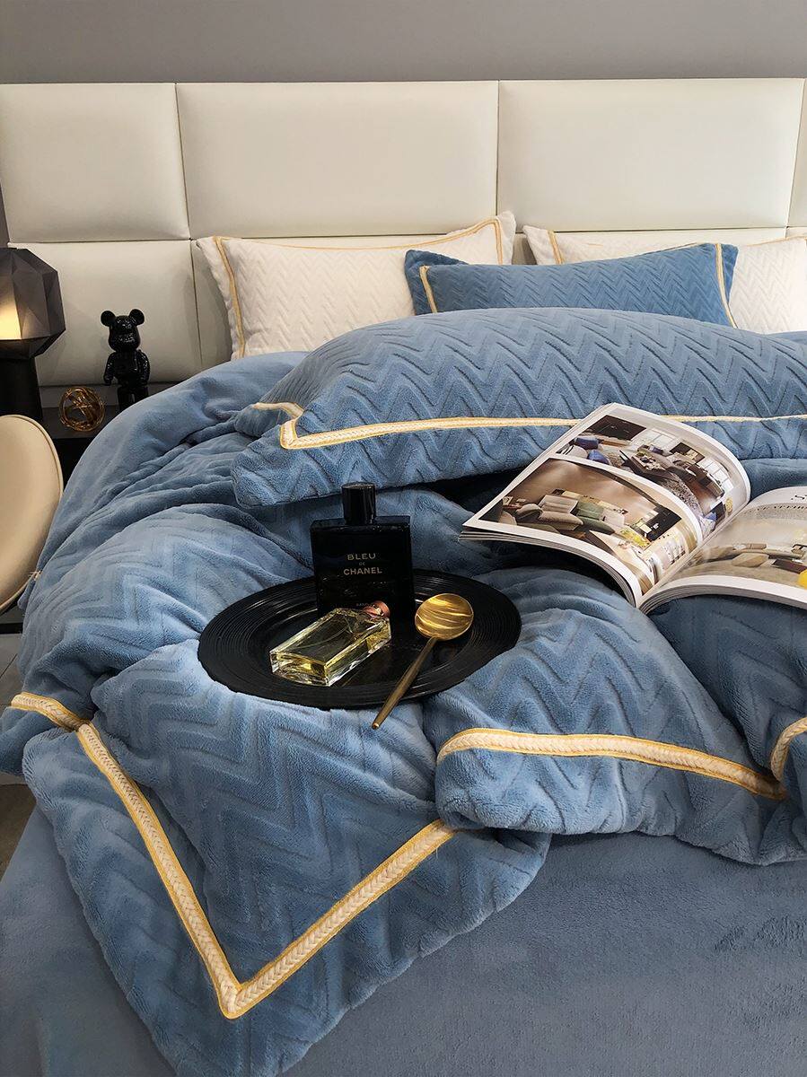 Milk velvet French net red atmospheric four-piece set high gram weight winter thickening plus velvet warm ab version quilt bed cover