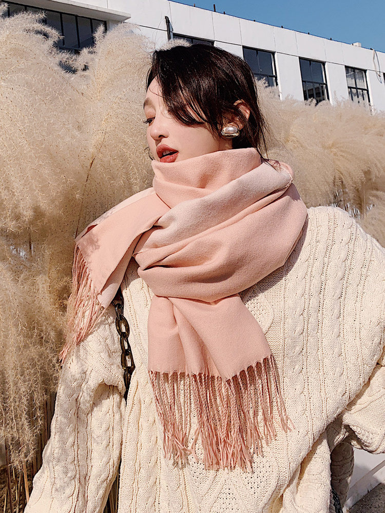 Japanese GP Tennis Red Double Face Scarf Female Winter Imitation Cashmere Couple Shawl Thickening Student Pure Color Girly 100 lap