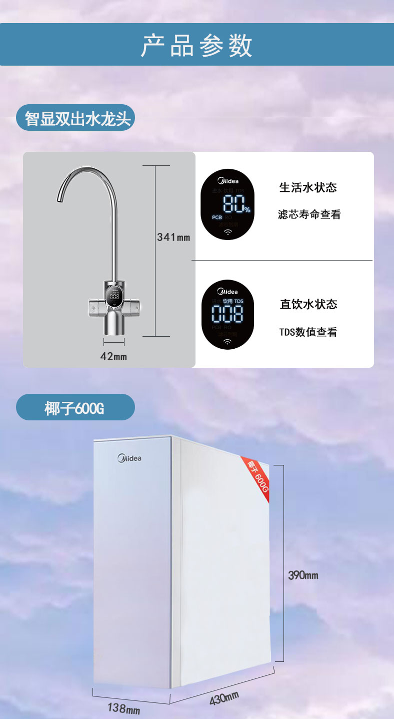 Midea water purifier coconut MRC1782D-600G household direct drinking RO reverse osmosis water purifier mother and baby zero Chen water