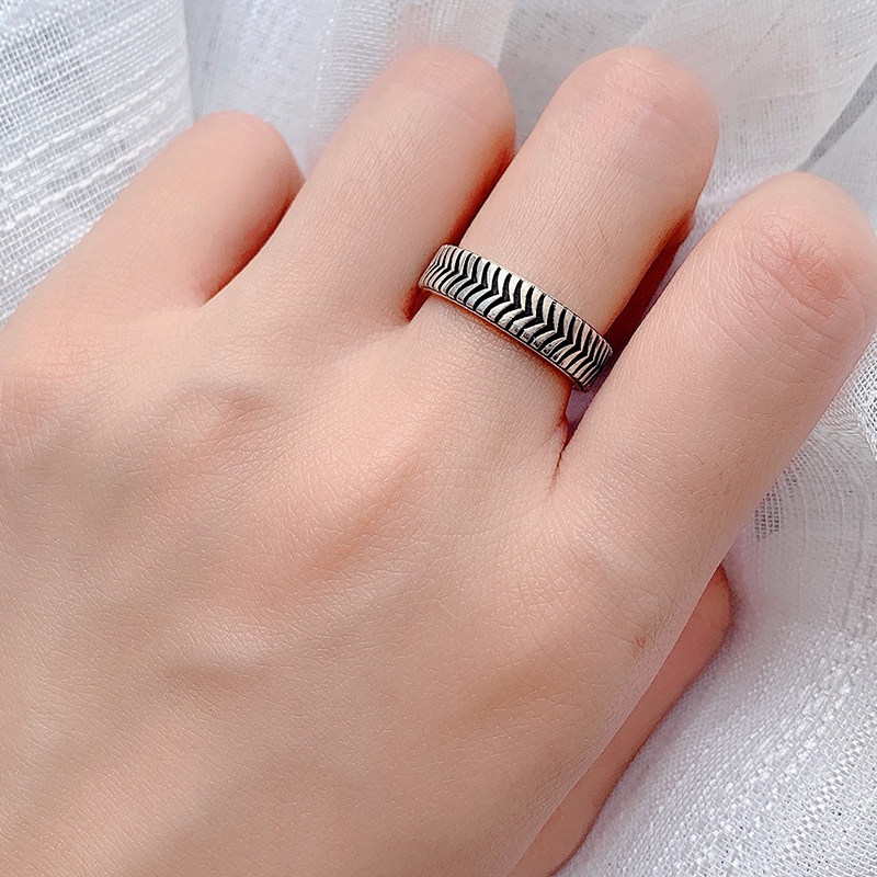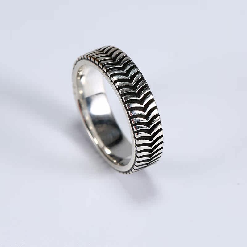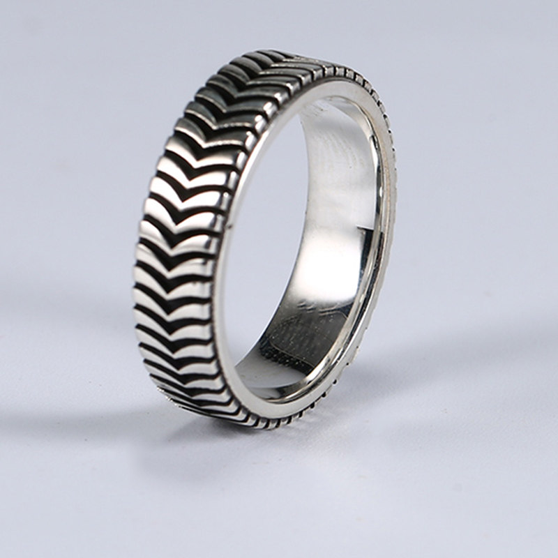 925 Sterling Silver Tire Ring Index Finger Original Design Men's Handmade Personality Pattern Lettering Women's Middle Finger Ring
