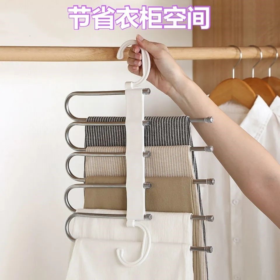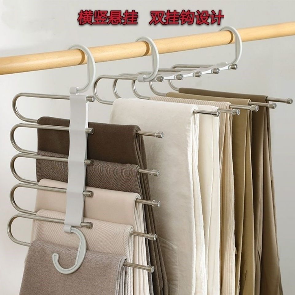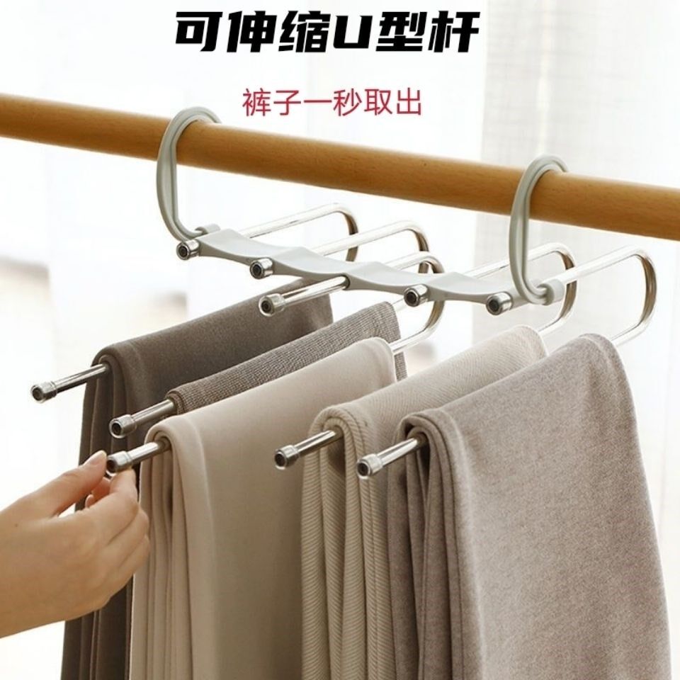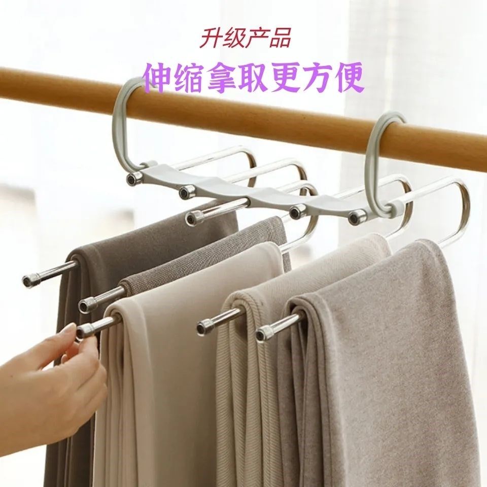 Stainless steel telescopic multi-functional bold magic pants rack hanging storage foldable household wardrobe multi-layer hanging pants artifact