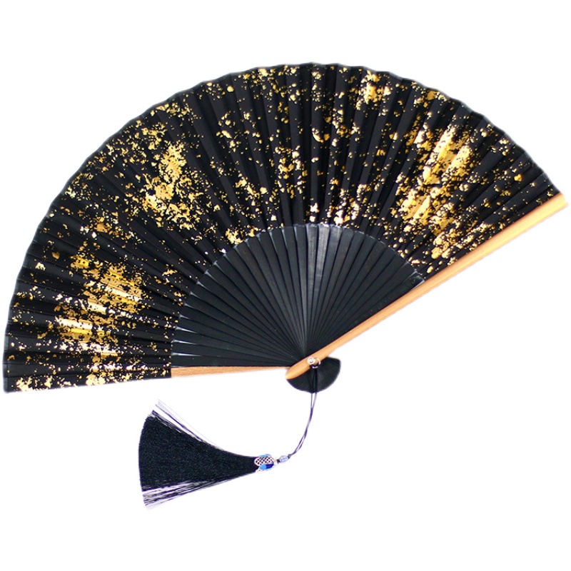 Chinese fan 6 inches gold and silver sprinkle with silver real silk female style ancient wind white face retro folding fan classical photography
