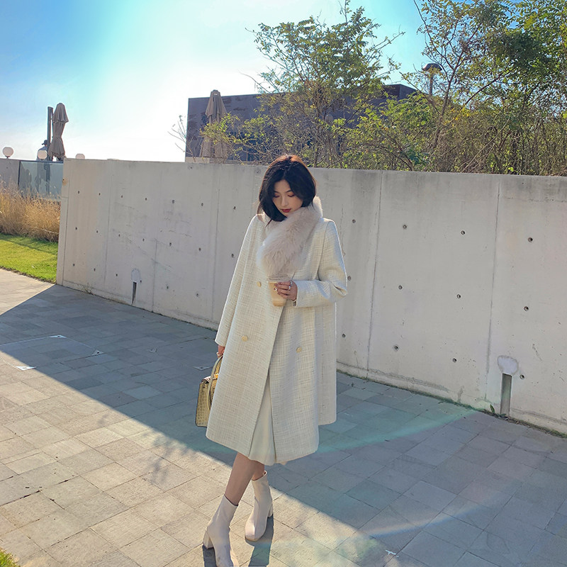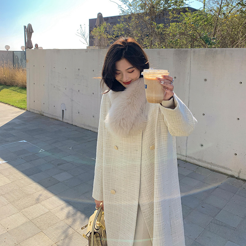 (TWO LEMON Sinan Mansion) Xiaoxiang rice white coat 2022 autumn and winter new long section all-match coat women
