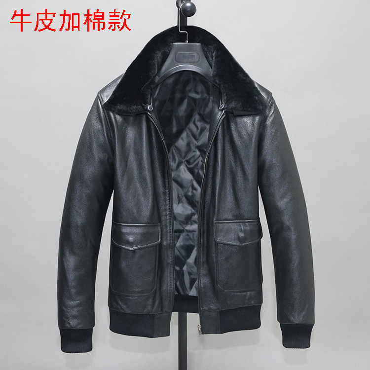 Head Sheep Sheep Bull Dermis Fur Coat Men's Body Short Flipping Casual A2 Flight Jacket Jacket Jacket Single Plus Cotton