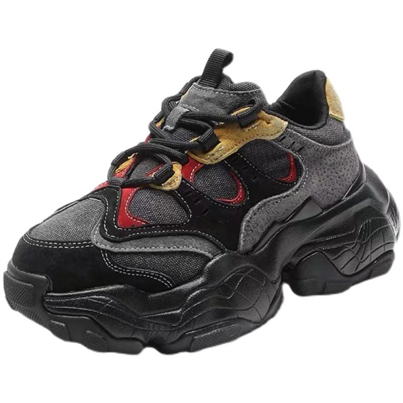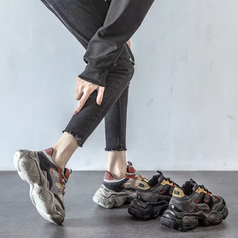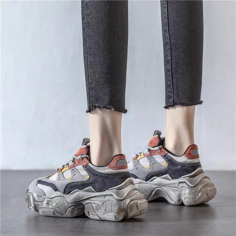 Nicole veve retro daddy shoes women's thick bottom muffin leather all-match net red dirty sneakers ins tide