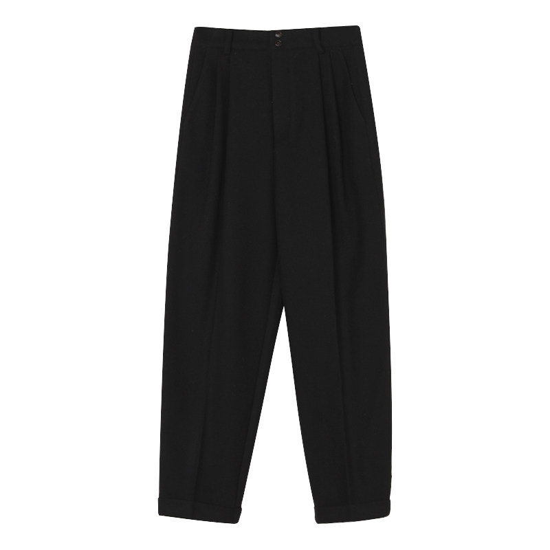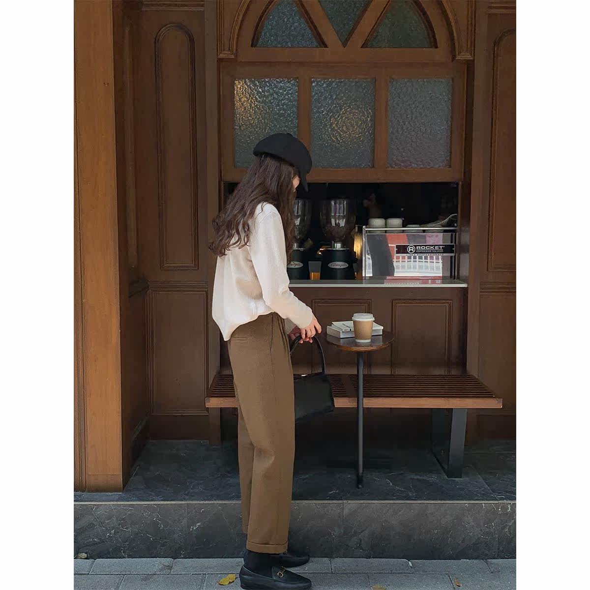 5siss commuter all-match high waist straight casual pants women's 2022 winter woolen loose slim nine-point pants small man