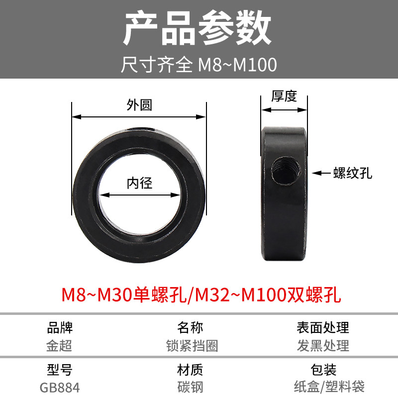 GB884 hair black screw locking C type clasp shaft end C type clasp locking nut fixing ring stop ring, 8 -, 100