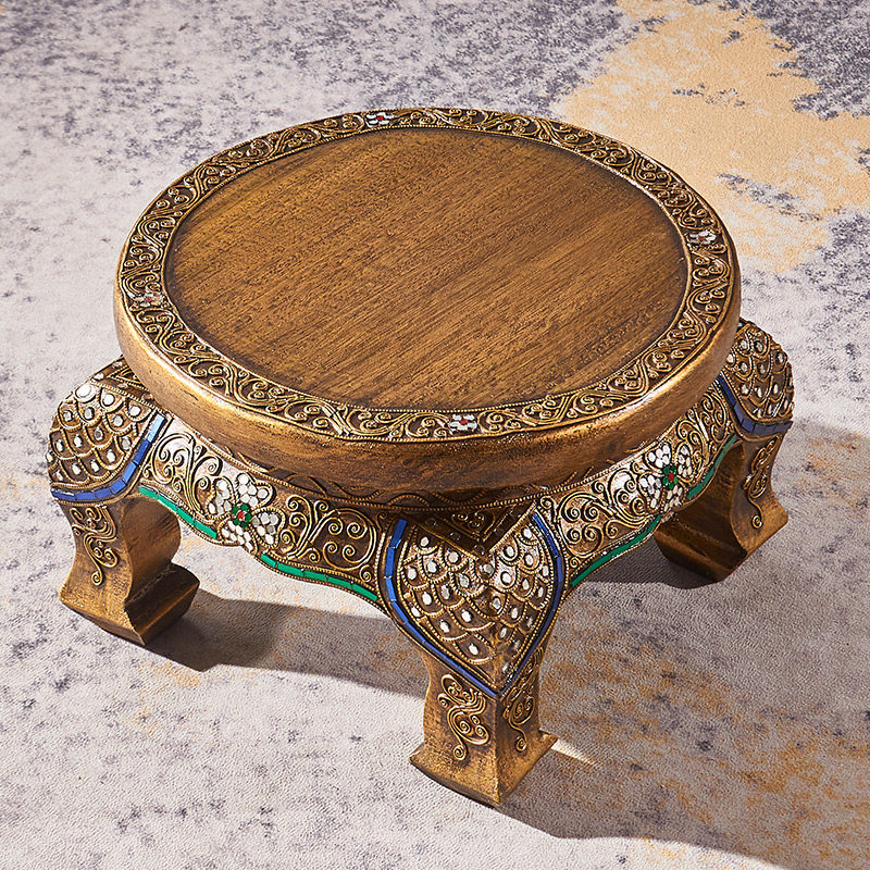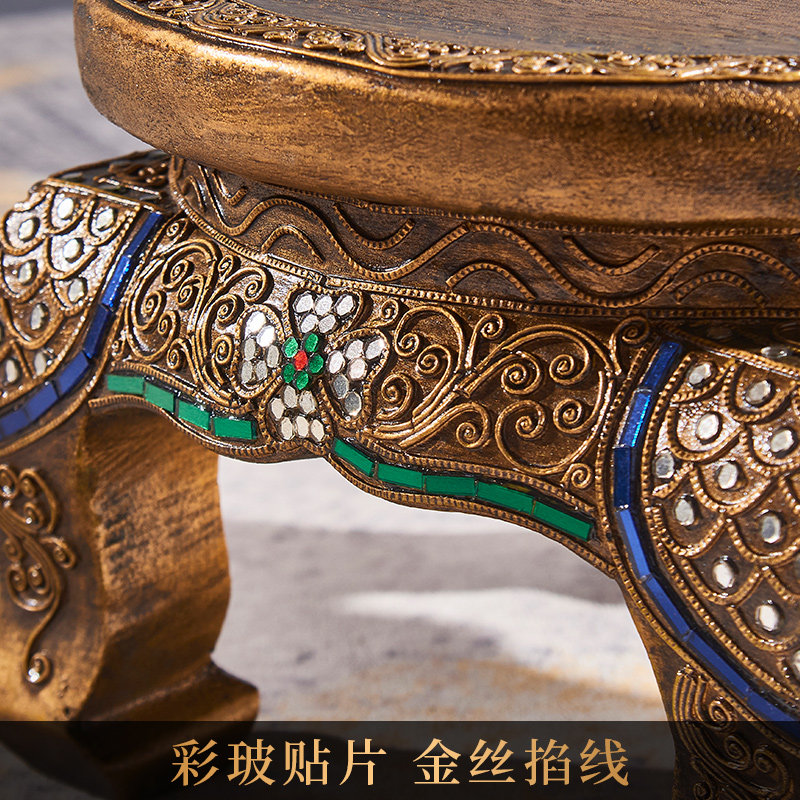 Taiyu Southeast Asian solid wood stool wooden shoe changing stool Thai simple living room round stool household wooden stool