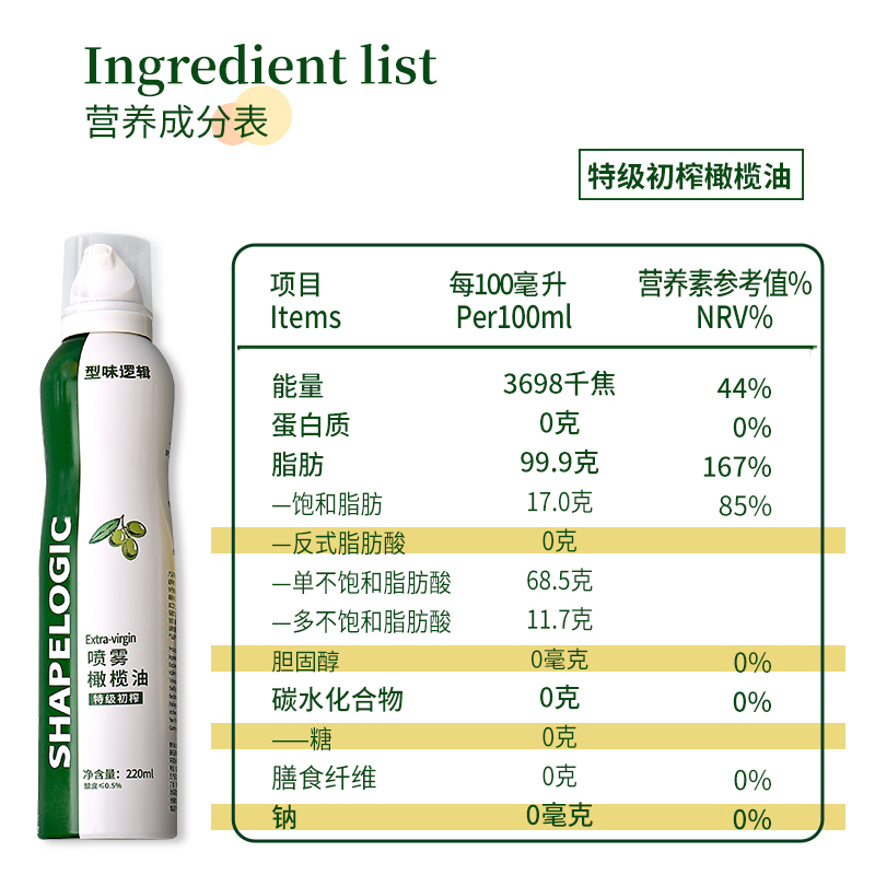 Type Taste Logic Special Grade Virgin Olive Oil Spray 0 Trans Fat Imports Cold Pressed Oil Acid ≤ 0 5% 5%