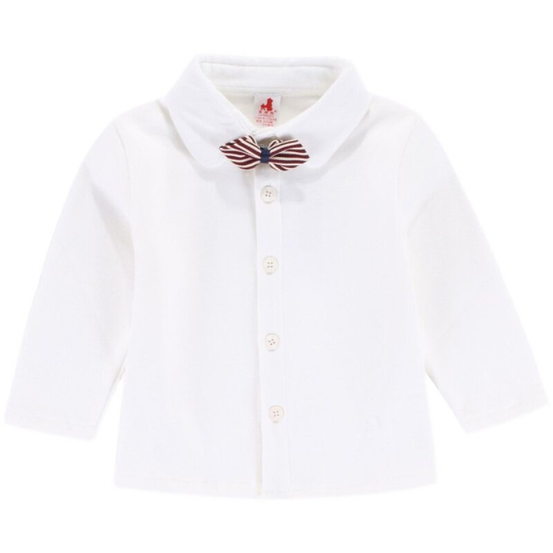 Boys baby shirt pure cotton plus velvet baby white shirt children's lapel bottoming long-sleeved t-shirt dress thick autumn