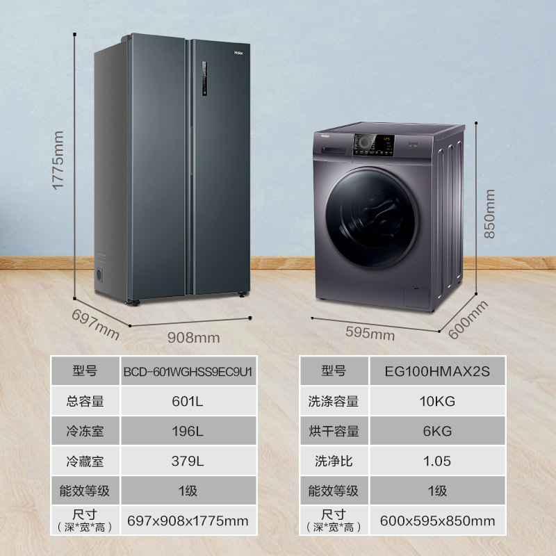 Haier Ice wash suit 601L open two doors frost-free refrigerator 10Kg roller washing and drying integrated frequency conversion official flagship
