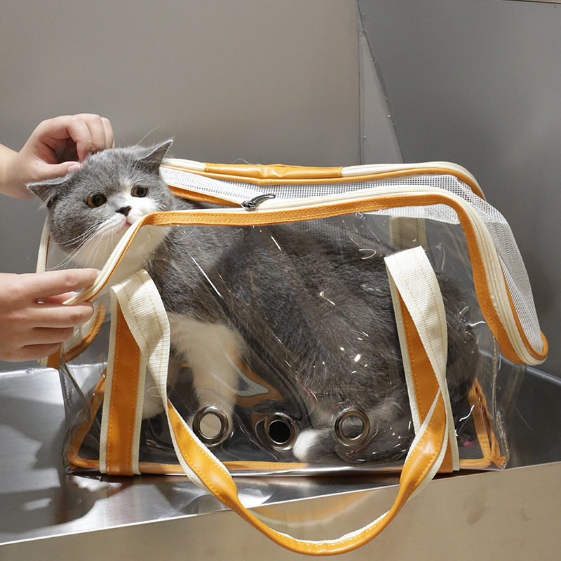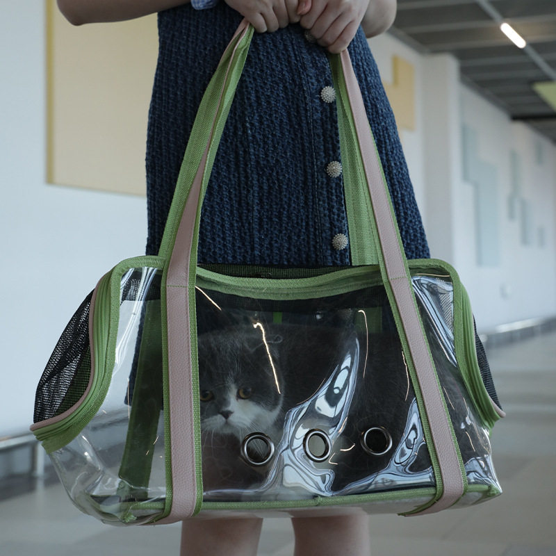 Oxford cloth visible window shoulder bag cationic car backpack PU shoulder transparent backpack pet transparent shoulder bag-orange pet transparent shoulder bag-pink green