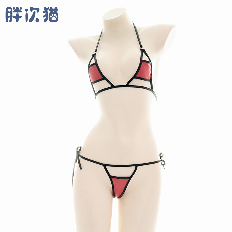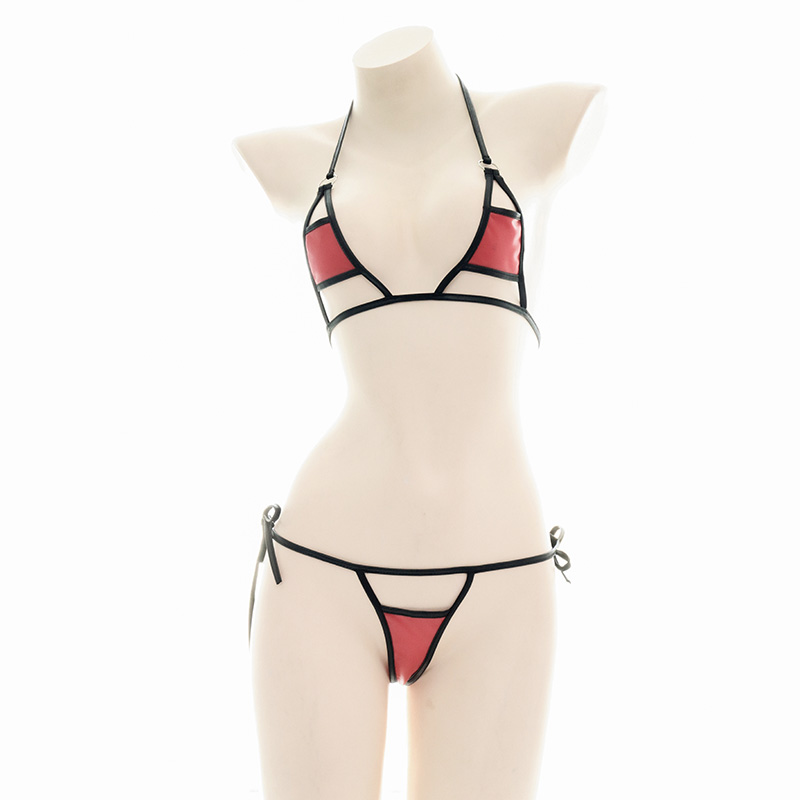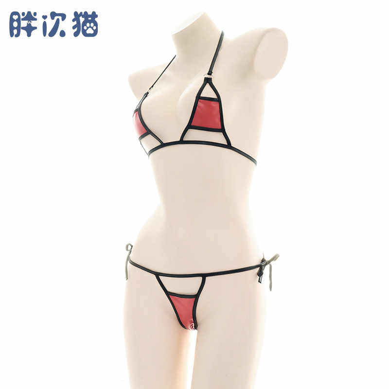 Original Lacquer Leather Collision Color Bikini Sexy Three-point Underwear Strap Pyjamas 2021 New Products-Taobao