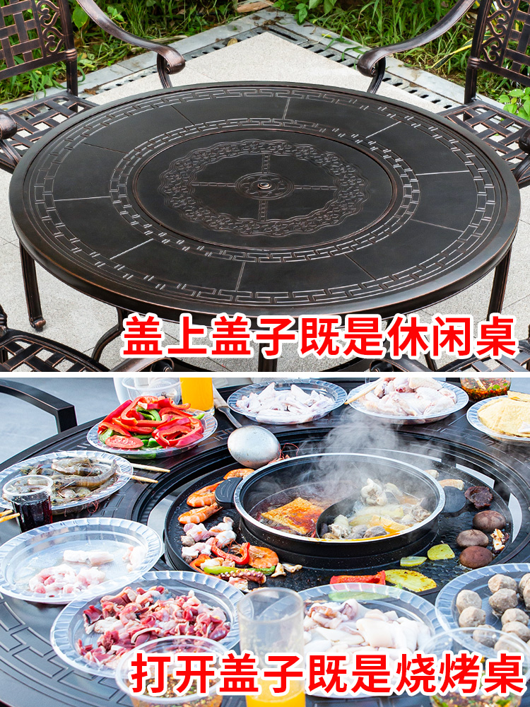 Outdoor table and chairs Electric Barbecue Waterproof Sunscreen Cast Aluminum Terrace Garden Patio Outdoor Terrace Iron Art Outdoor Leisure Composition
