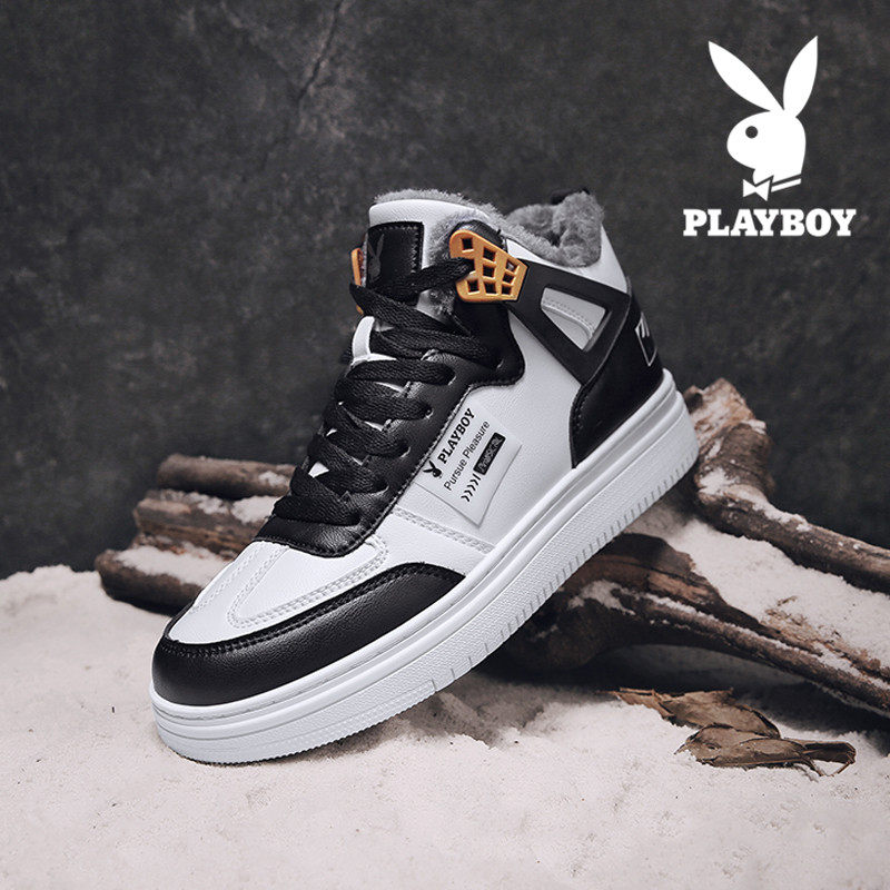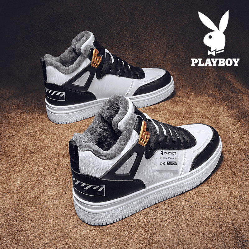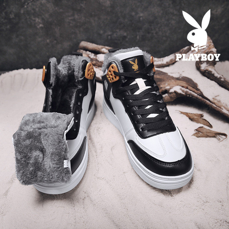 Flowers Playboy men's shoes Winter aj medium-high cylinder Leisure 100 hitch sports board shoes Northeastern plus suede thickened thermal cotton shoes
