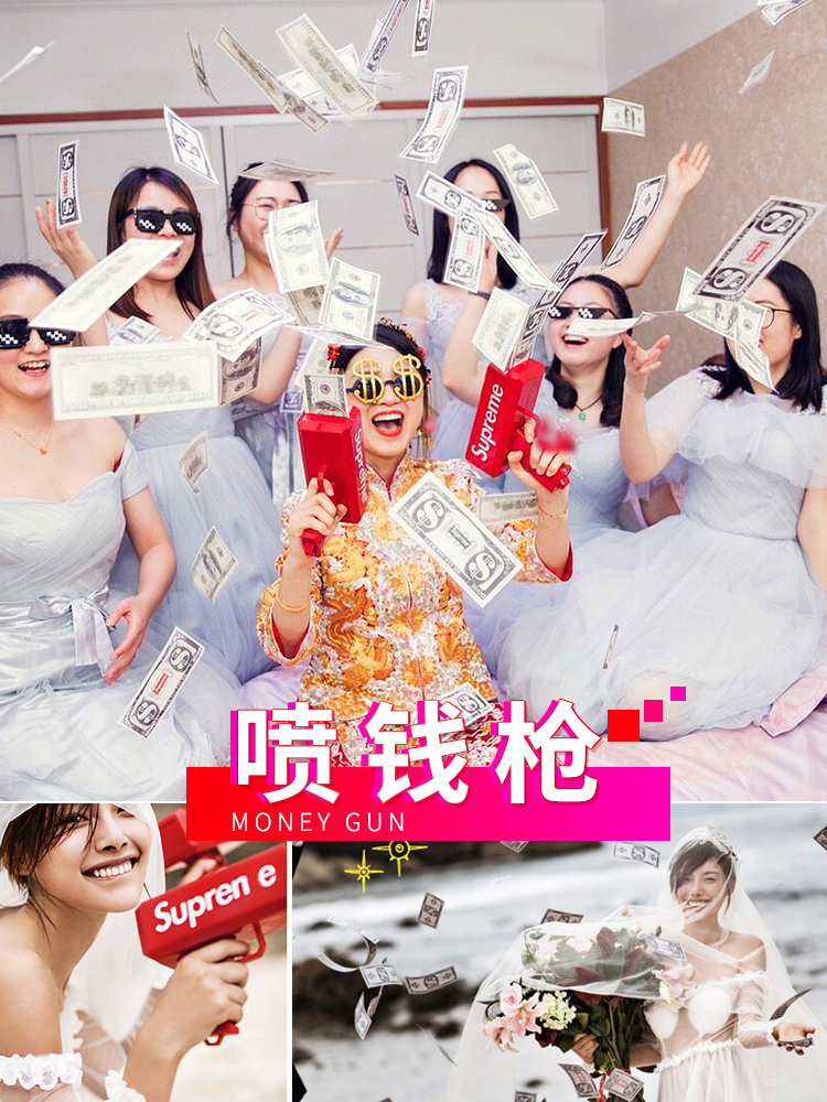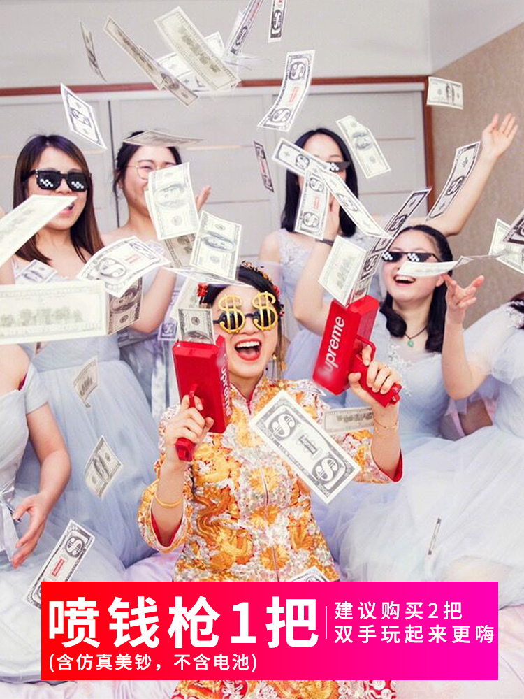 Creative Knot Wedding Online Red Toy Banknote Gun Bridesmaid Spray Money Gun Greet Wedding Bride to take pictures of the game