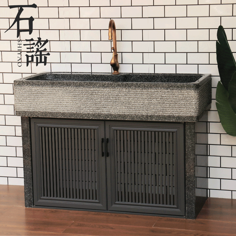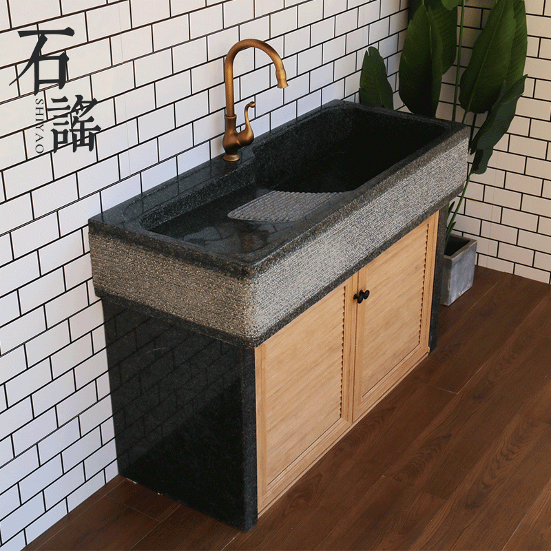 Outdoor Stone Laundry Pool Balcony Integrated Sink Marble Patio Stone Wash Basin Home Floor-Style Pool