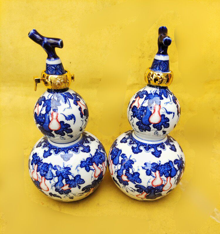 Old wine bottle collection 2 catties of green flowers gourd pair of empty bottles Jingdezhen ceramic collection Decorative Pendulum