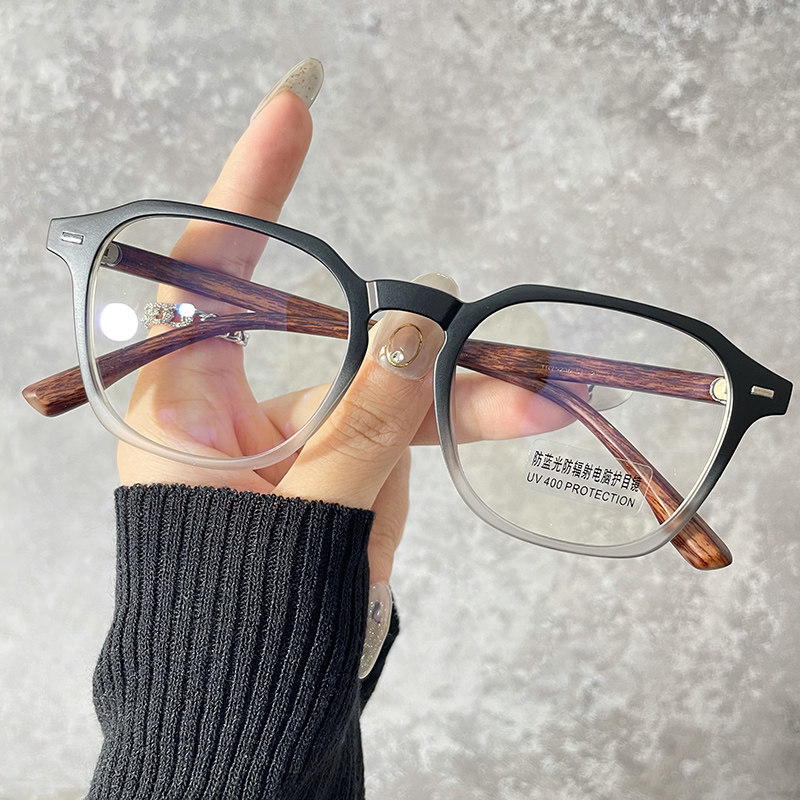 Ultra-light polygonal black frame anti-blue light anti-radiation myopia glasses men's retro flat light eye protection frame Korean version trendy women
