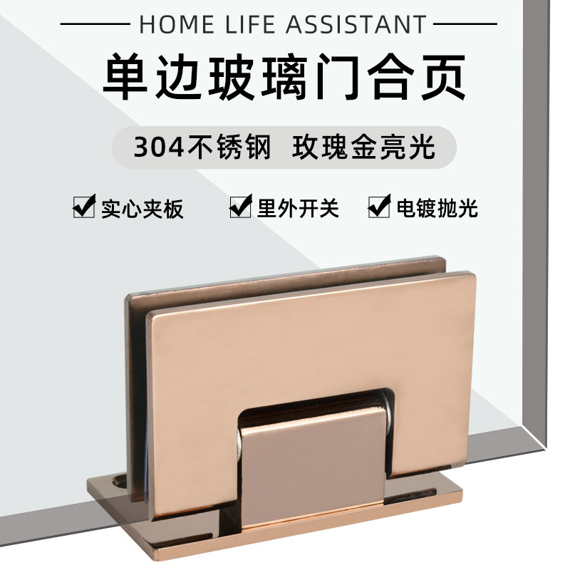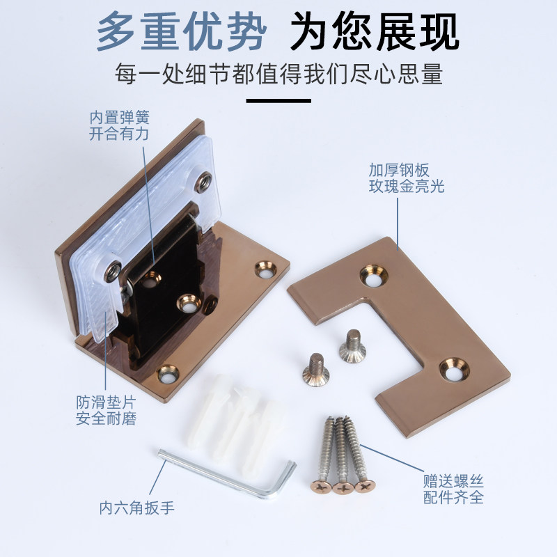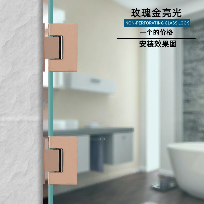 Rose gold bright light arched unframed glass door hinge 90 degrees single side L-type side mounted bathroom clamp shower room hinge