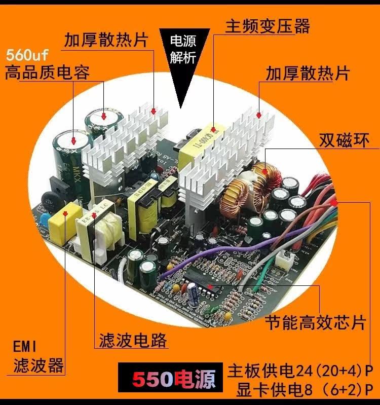 Desktop computer power supply 450W 550W wide-width voltage stabilized mute long wire graphics card 6 2 dual-interface host power supply