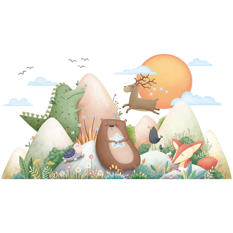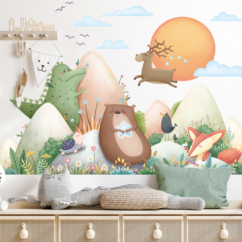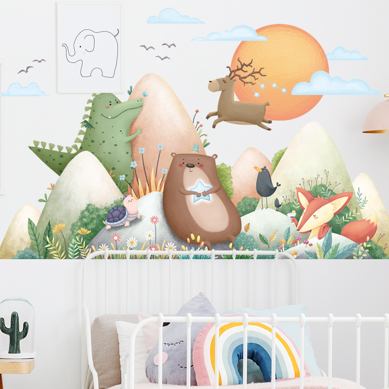 Cartoon skirting board wall stickers stickers animal clouds flying birds mountain peak kindergarten classroom layout children's room