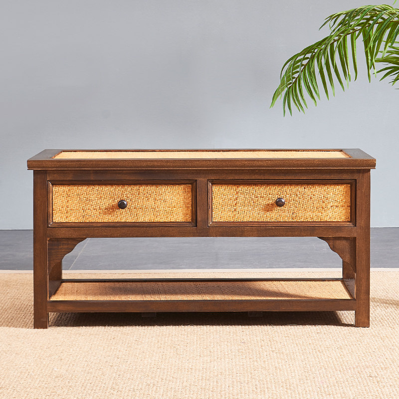 Promotion Thai solid wood vine choreography minimalist tea table Thai style SPA massage parlor living-room small family type storage tea table table
