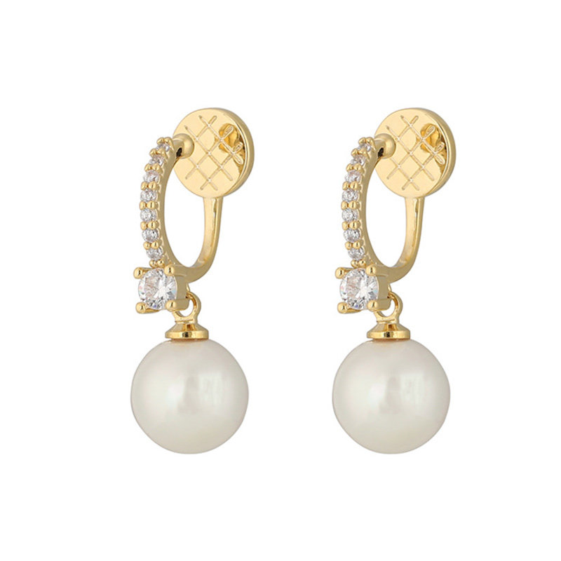 "Brocade Embroidered" Pearl Earrings Dish Ear Clip Without Ear Piercings Woman Delicate Temperament Retro Ear Needle Summer Earrings