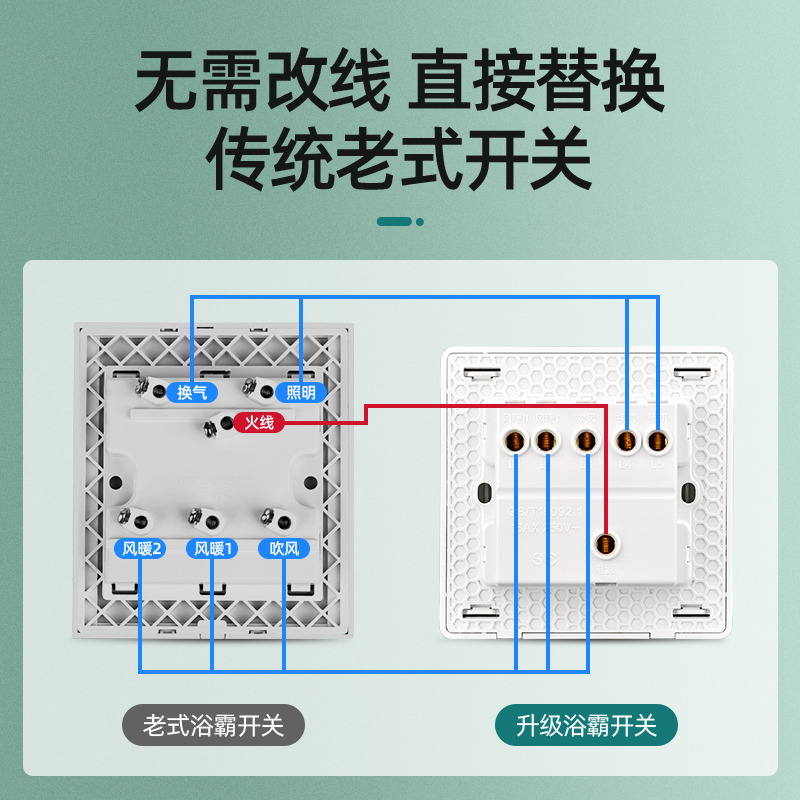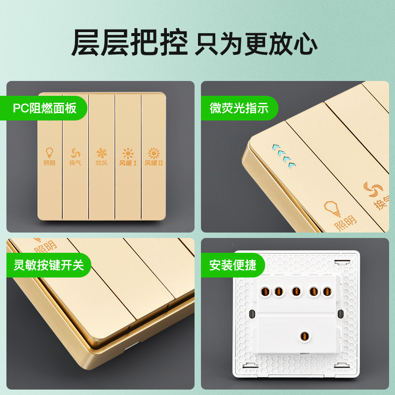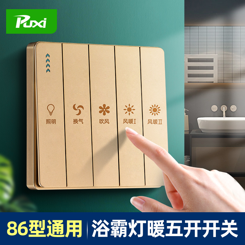 Bath Bully Special Switch Five Open Home Universal Bathroom Switch Five All-in-one Toilet Big Board Switch Warm Air Gold