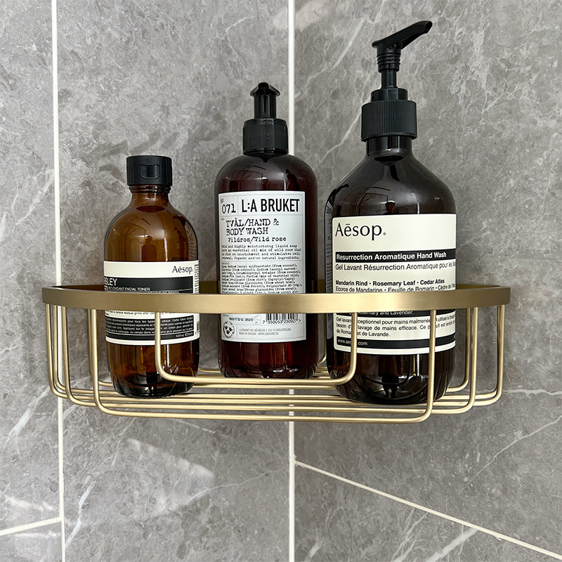 "Twilight" Corner Basket Brass Wire Drawing Nordic Minimalist Wind Bathroom Upscale Texture Shelf Monolayer