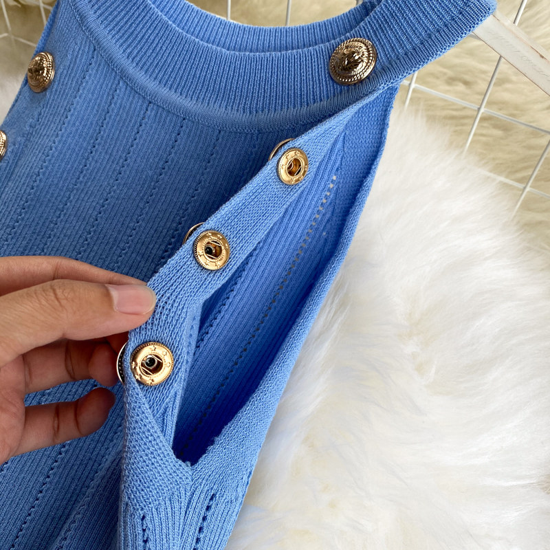 Summer Womens Knitting O-neck Off-shoulder Tank Tops Female