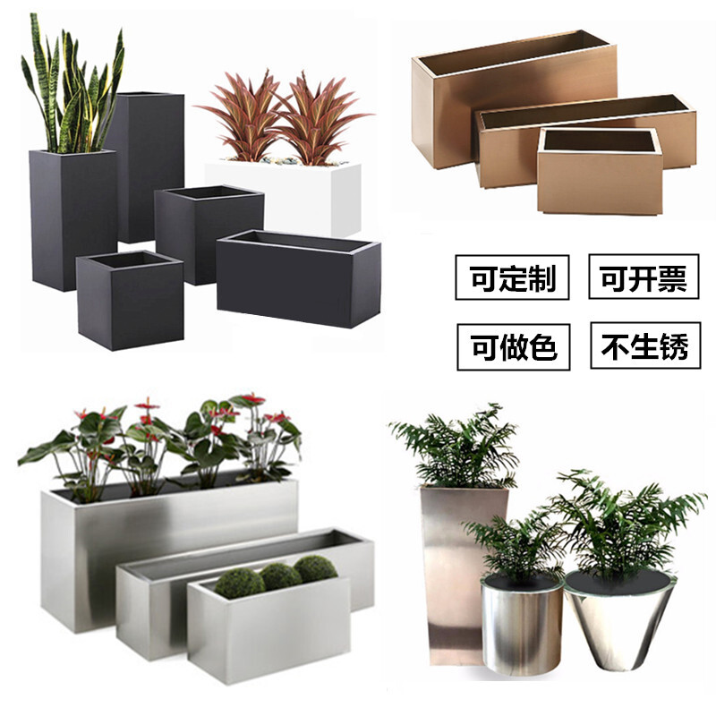 Outdoor stainless steel wrought iron flower box combination custom flower bed sample house display center commercial square flower trough flower pot tree box partition