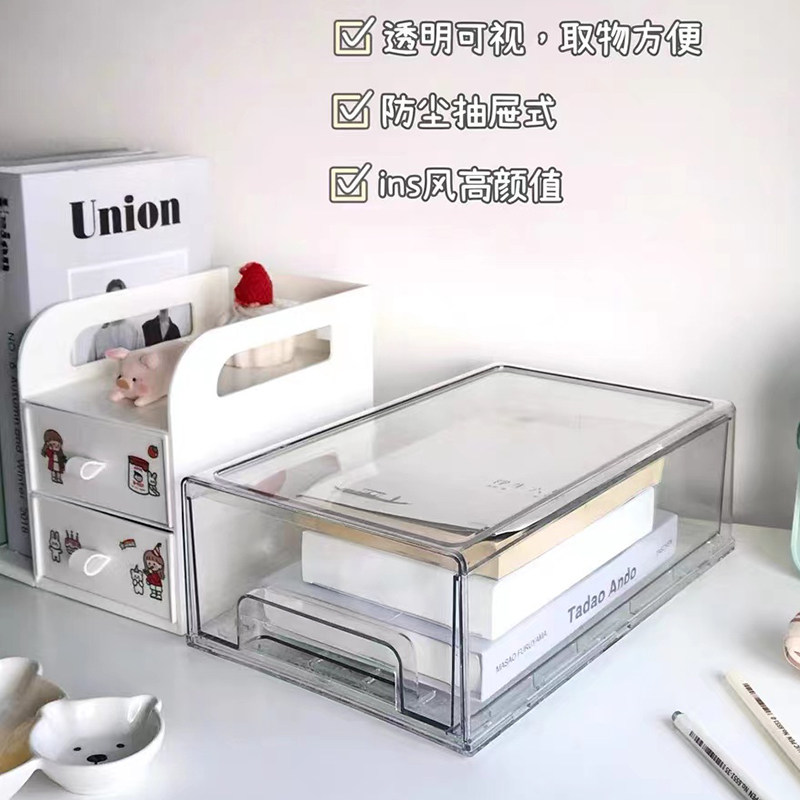 School desktop storage box hand account with drawer acrylic student dormitory cosmetics can be superimposed stationery rack
