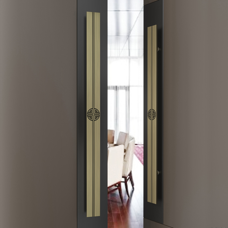 New Chinese glass door handle stainless steel solid wood door upscale bag room handle thickened antique bronze custom lettering