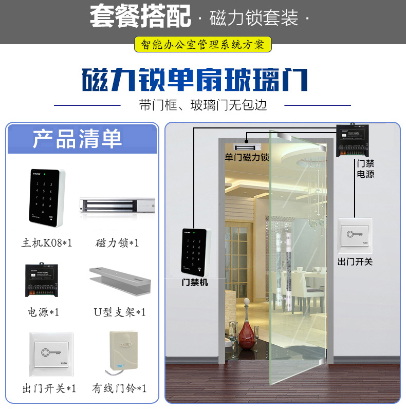 Access control Set High Excellence K08 Swipe Password Access System Solution Magnetic Lock U Steps Remote Control Glass Door