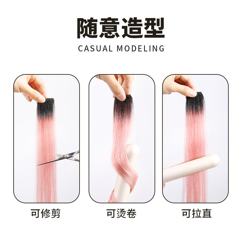 Wig piece female long hair full real hair color highlight small patch invisible seamless one-piece hair extension hanging ear hair dyeing piece