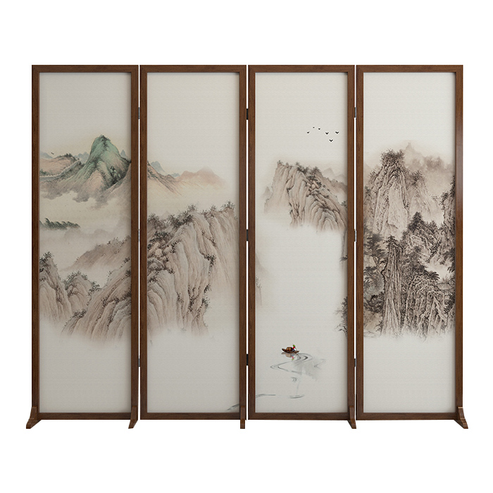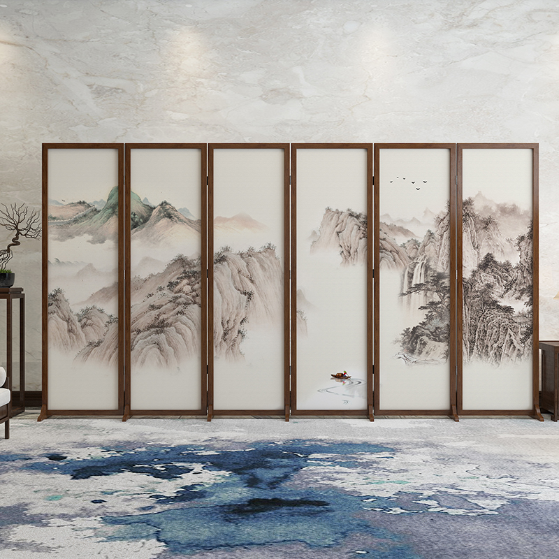 New Chinese Landscape Painting Solid Wood Screen Partition Living Room Home Office Hotel Sample House Display Center Movable Fold