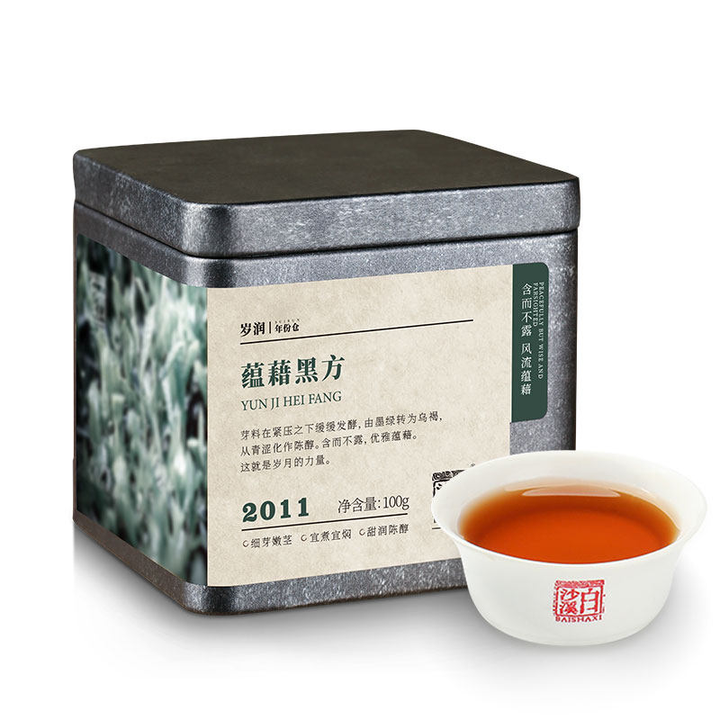 Baishaxi Black Tea Hunan Anhua Suirun 2011 Aged Black Tea Authentic Black Brick Tea 100g
