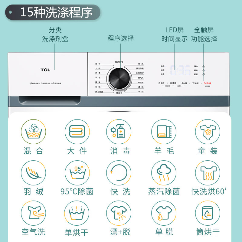 TCL washing machine 10 kg washing first level frequency conversion TCL washing machine 10 kg de-mite level frequency conversion TCL washing machine 8 kg de-mites steam washing frequency conversion beauty washing machine 10 kg apart