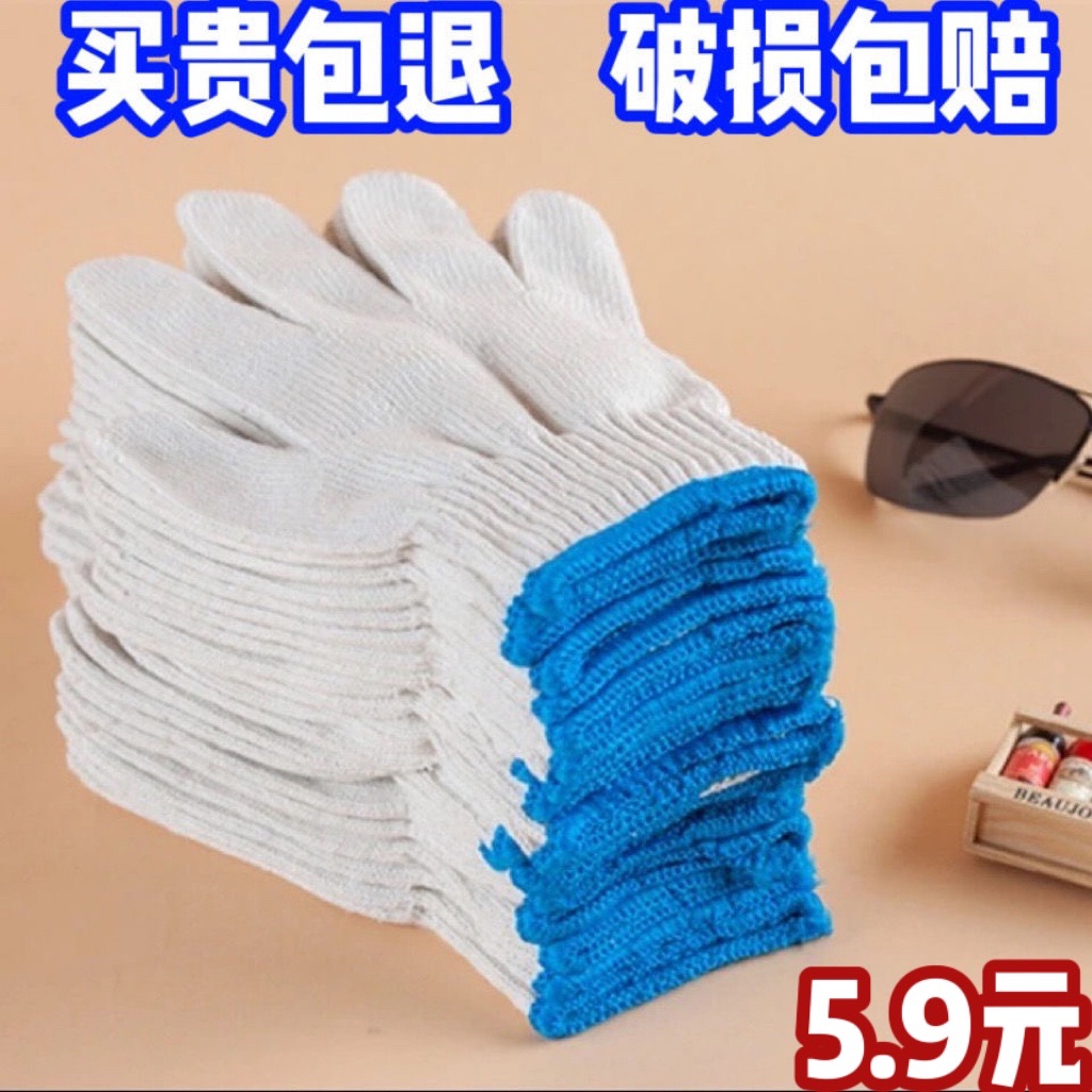Cotton thread breathable labour protection gloves work white yarn wear-proof thickened protective steam for men and women Nylon to work