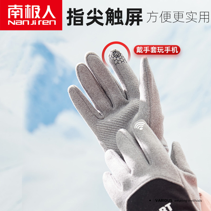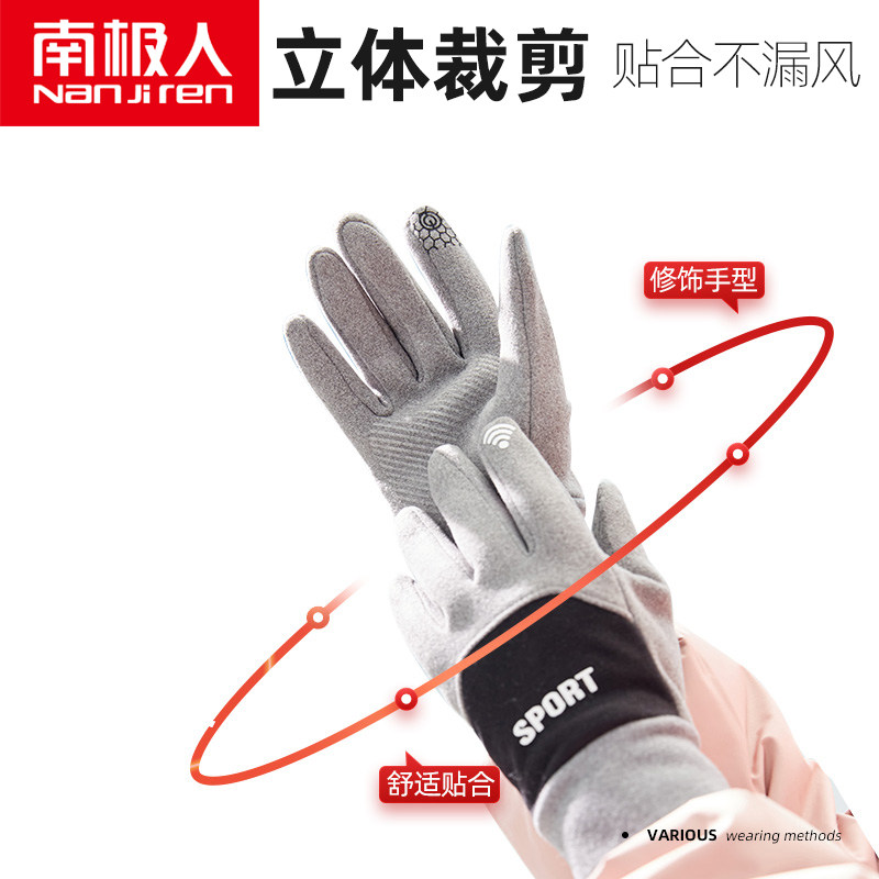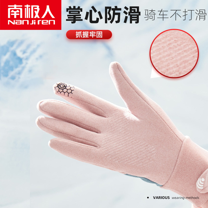 South Pole Guy Duvet Gloves Winter Women Outdoor Riding Plus Suede Thickened Anti-Chill Warm Electric Moi Windproof Touch Screen