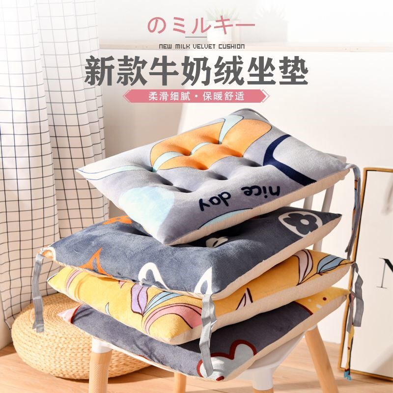 Dining Chair Cushion Base thickened Milk Suede Soft Comfort High Play Non-slip To Work Group Strap Breathable Student Fart Mat