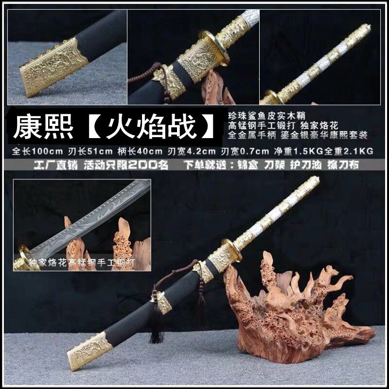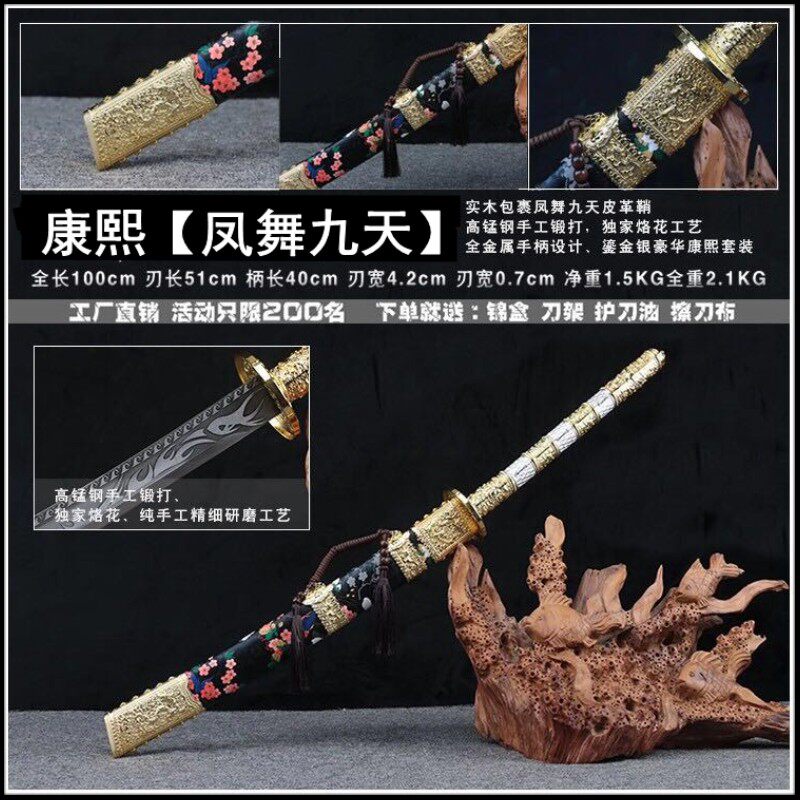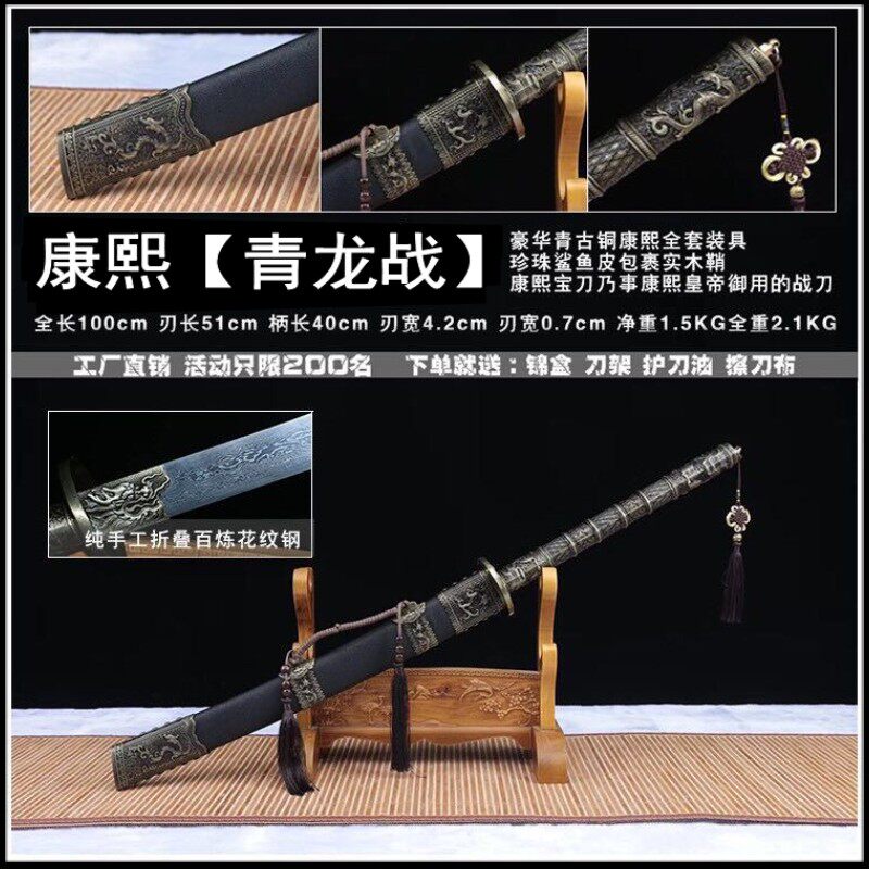 Longquan City Knife Sword One Body Long Knife Kangxi Battle Knife High Manganese Steel Embroidered Spring Treasure Knife Collection Cold Weapon Short Knife Sword Unopened
