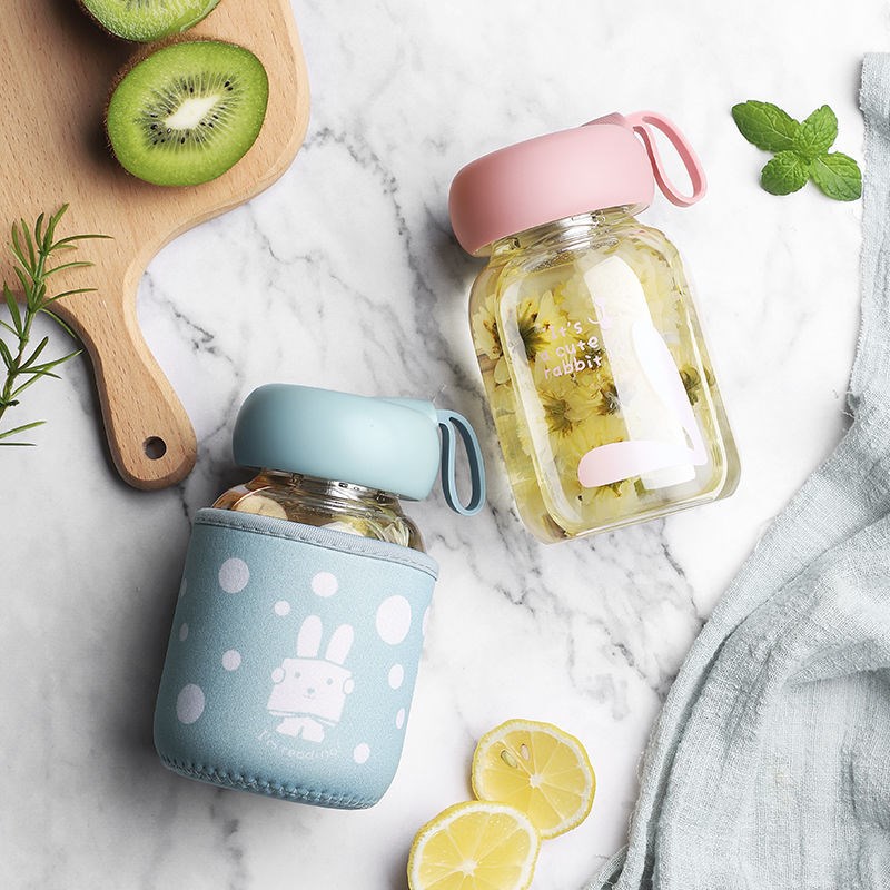 Bean cup glass Mini portable children's water cup brief freshener department water glass woman cute super cute internet red girl