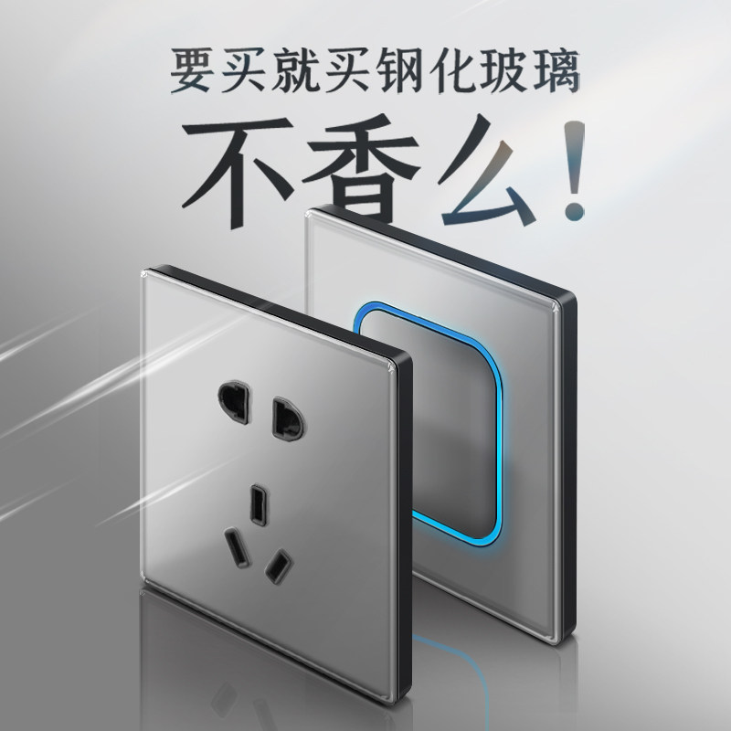 Five-hole socket (tempered glass) Mixed five holes (tempered glass) One open single control (LED square halo tempered glass) One double control (LED square halo tempered glass)