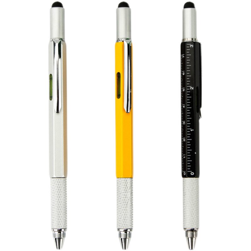 6-in-1 screwdriver tool pen spirit level scale multi-function pen cross-border metal touch screen capacitive ballpoint pen