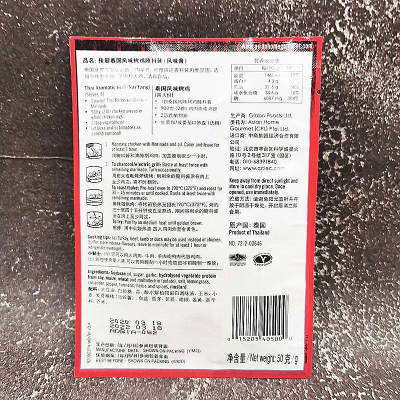 Jiachu Brand Thai Style Grilled Chicken Marinade Sauce Home Fried Chicken BBQ Marinated Meat Seasoning Sauce 50G