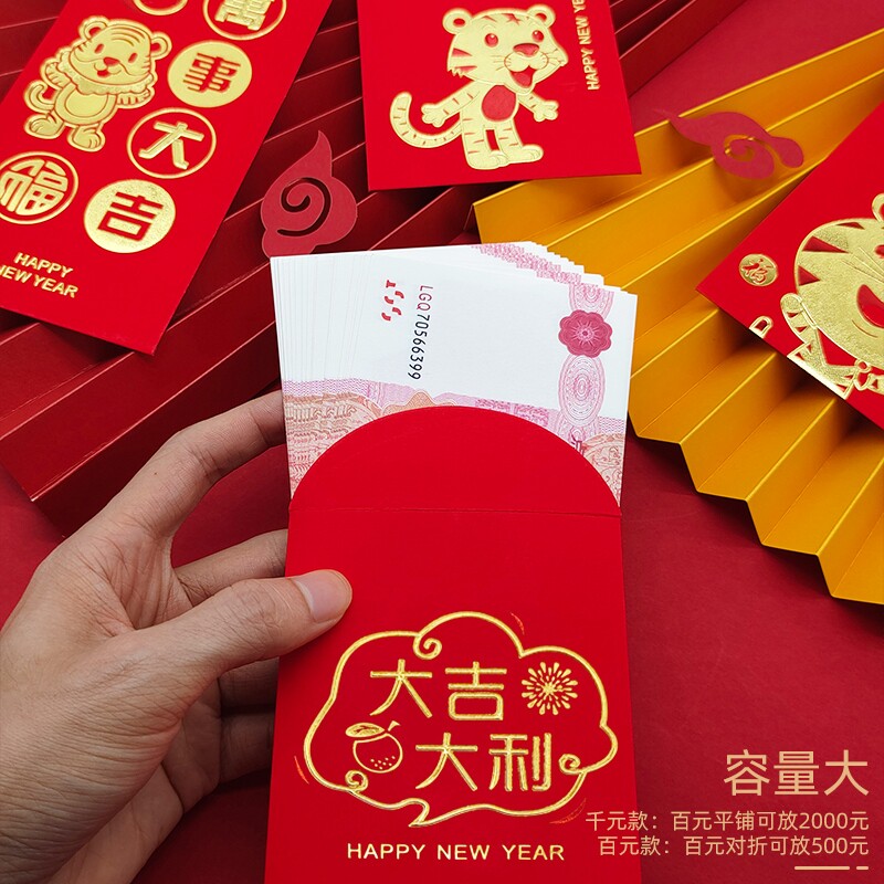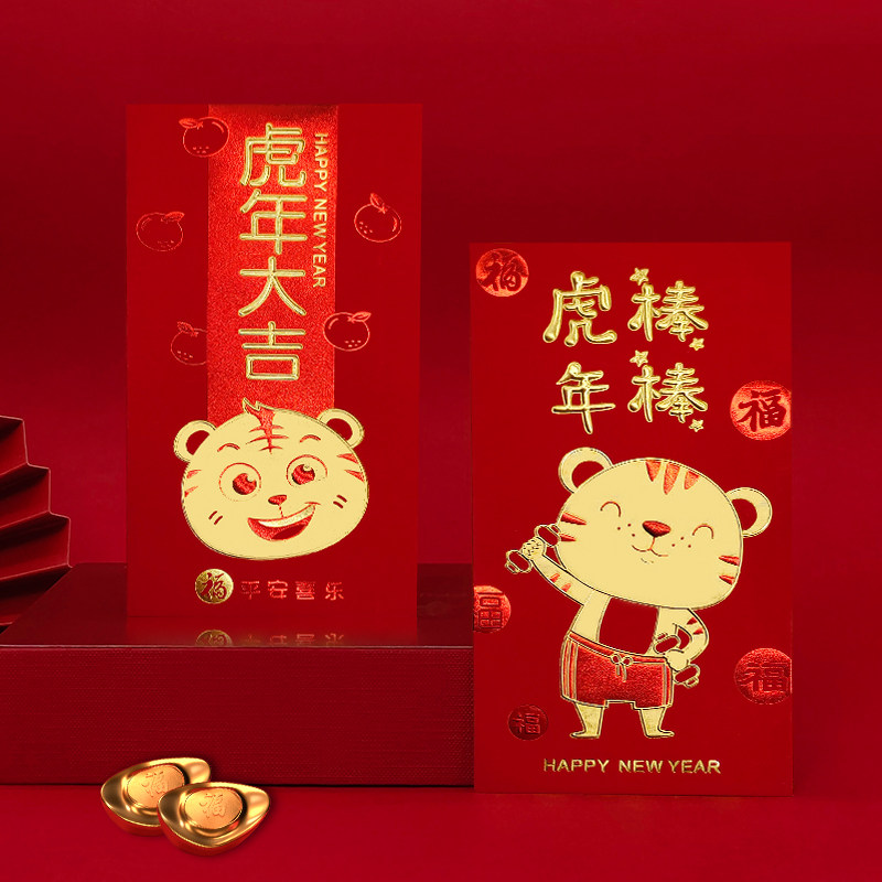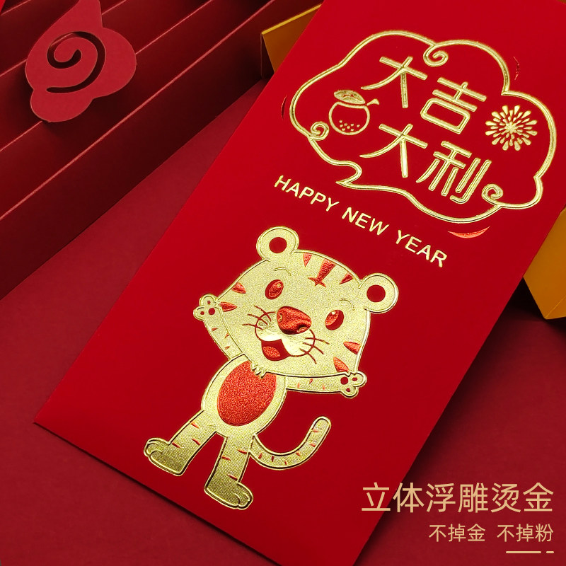 2022 Chinese New Year Children's New Year Red Bag Katumbli is a seal of the Year of the tiger with solid embossed gold and gold bag printing