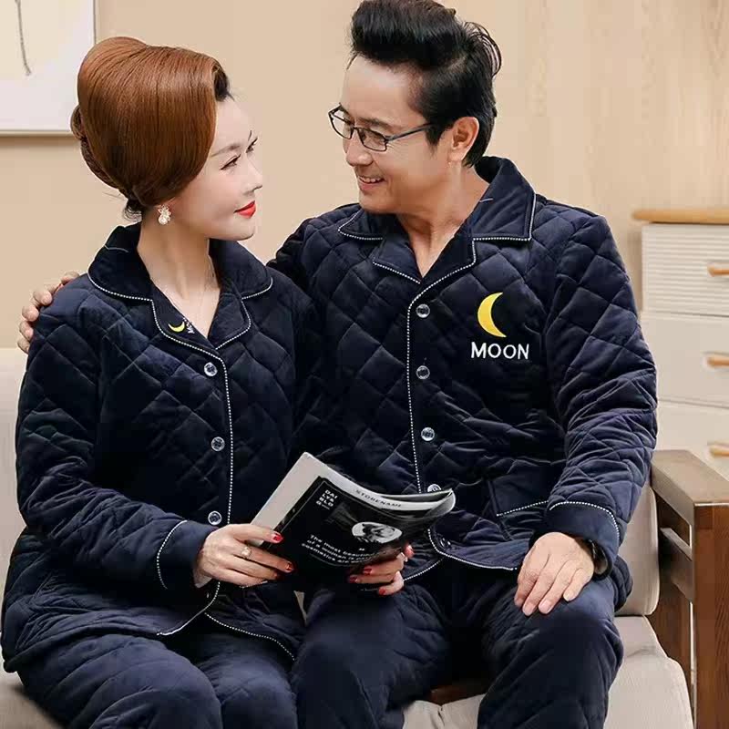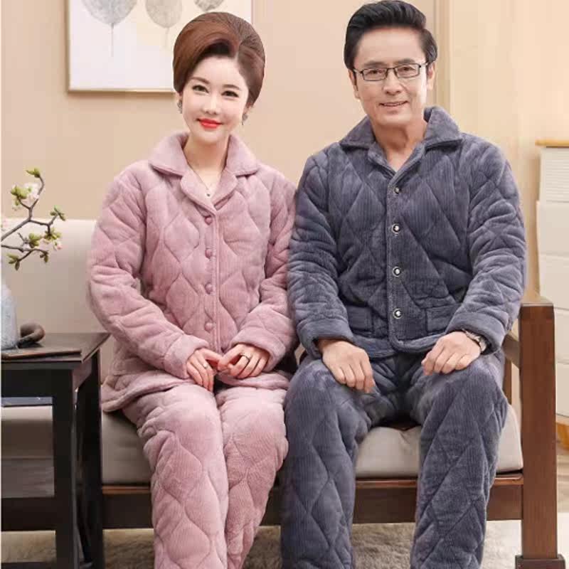 Winter Coral Suede Pinch cotton Daddy Mom Sleeping Women Cavet Thickened Men's Three Layers Warm Flannel Suede Home Clothing